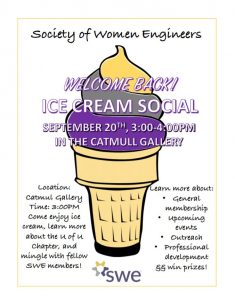 Come hang out with SWE in the Catmull Gallery on September 20th from 3:00PM-4:00PM for our back to school social! We will be serving ice cream floats, and providing information on the University of Utah SWE Section. Come and learn about outreach, professional development, and other upcoming events! Join us at the end for a…
